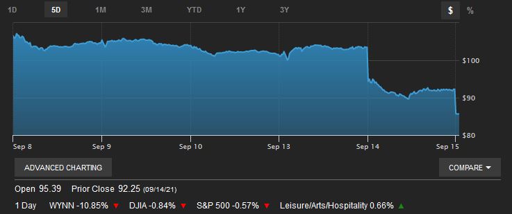 14日午後,這三家公司的股價一度回升,但15日開盤繼續下挫。其中,永利的股價為85.63美元,低於13日收盤的